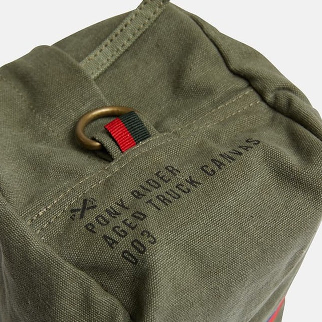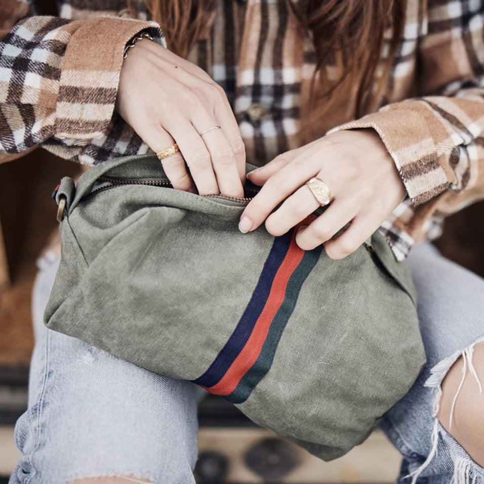 Made from upcycled canvas and our signature three stripe, is a core and classic Pony Rider style. Happy Aventures!