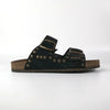 Comfortable and timeless, the Rivets sandles feature 2 adjustable straps that allows them to perfectly adapt to the shape of your feet. The black suede compliments perfectly the bronze buckles and rivets making them the perfect shoe to pair with any outfit.  Their cork soles are sturdy and offer excellent comfort.
