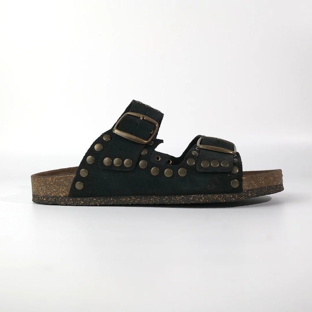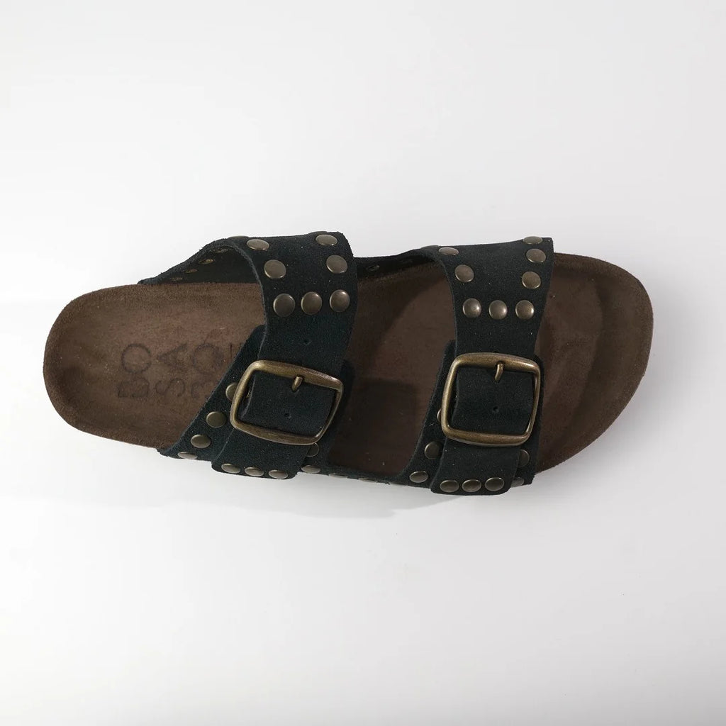 Rivets Suede Daim Noir Slides – Albert and Daphne