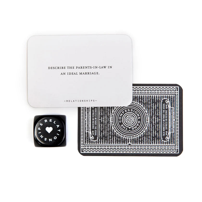 The Confessions Game is designed to get a group of friends into some of the very best sorts of conversations. The cards cover five categories: Careers, Sex, Money, Relationships and Family. Questions cover topics such as: Which of your friends do you envy the most? If you were braver, what would you be doing with your life? Would you rather be poor but esteemed, or rich but ignored? What bad trait of your mother have you inherited? Note: This card game contains adult content.