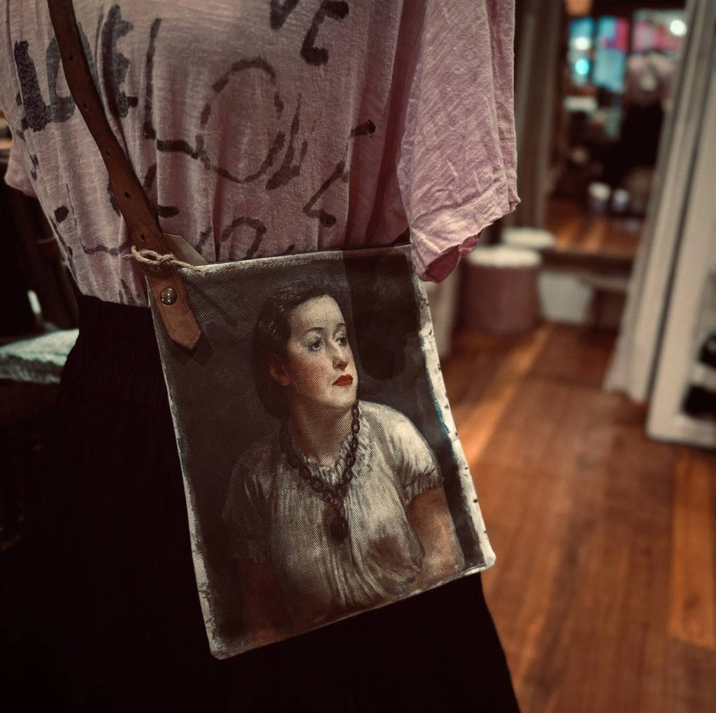 The paintings featured on these clutches were selected from Swarm's special portrait, still life and landscape collection.