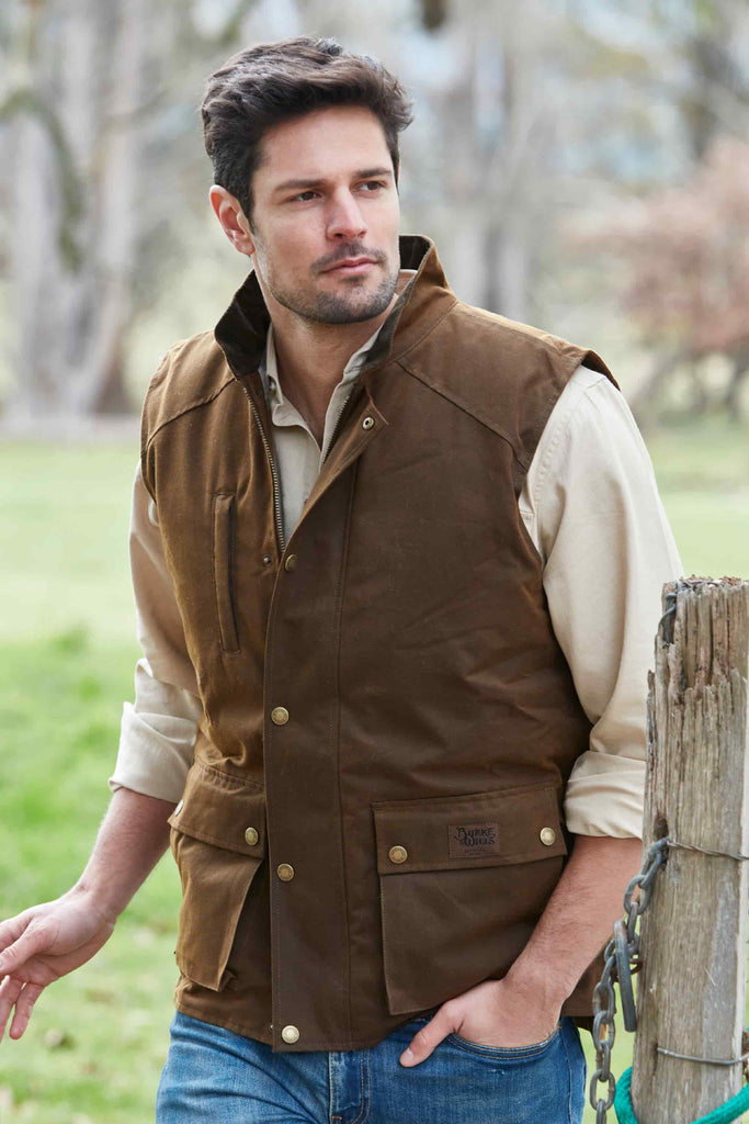 The Burke & Wills Derwent Vest is ideal for those cooler months. It is made from highly durable 12oz Cotton Dri-Tec Oilskin fabric and has a chunky sherpa lining which will keep you extra warm. The vest features a corduroy lined collar, adjustable side tab splits and several pockets for extra storage and functionality.