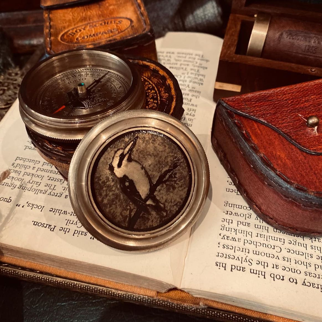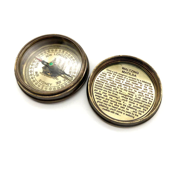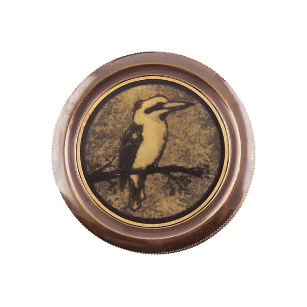 This beautiful 60mm diameter compass featuring an Australian Kookaburra is fully functional and comes in a protective leather case.