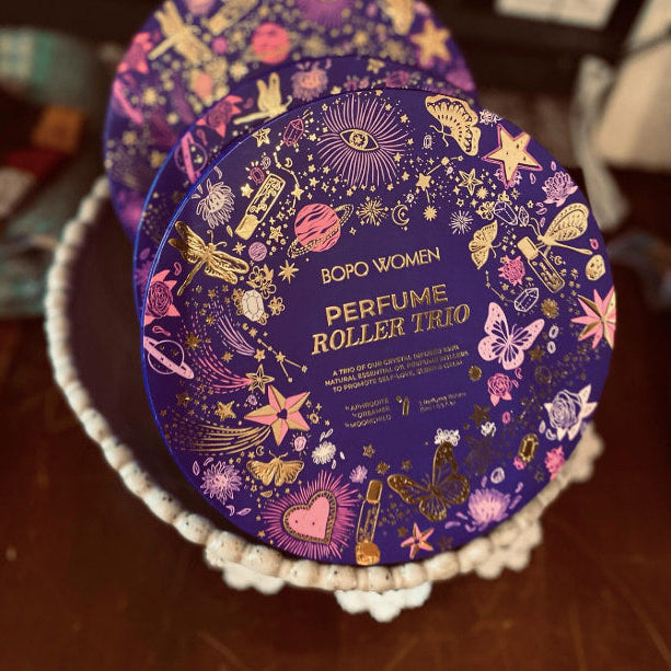 Bopo's three best-selling crystal infused essential oil perfume rollers, packaged in a beautiful gift box. These refined essential oil blends are amazing as a light natural perfume alternative and they're also the perfect gift for that special someone. Dreamer; for sleep and calm. Aphrodite; for love and abundance. Moonchild; for ease and flow. All perfume rollers feature their own corresponding crystals and crystal rollerball.