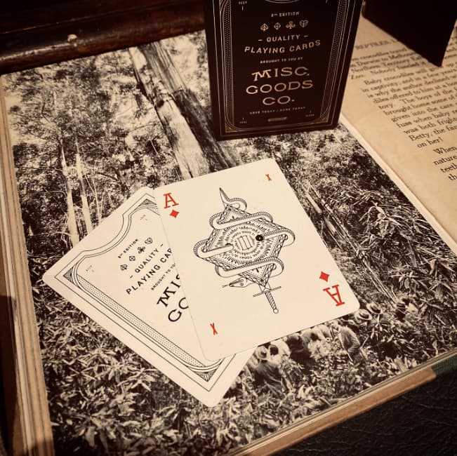 The deck is manufactured by the United States Playing Card Co, and is printed on Bee paper, the highest quality coated playing card stock. The tuck case is printed with embossed foil. The artwork for the entire deck has been reworked, from the case to every symbol, aces and even the typography on the cards.