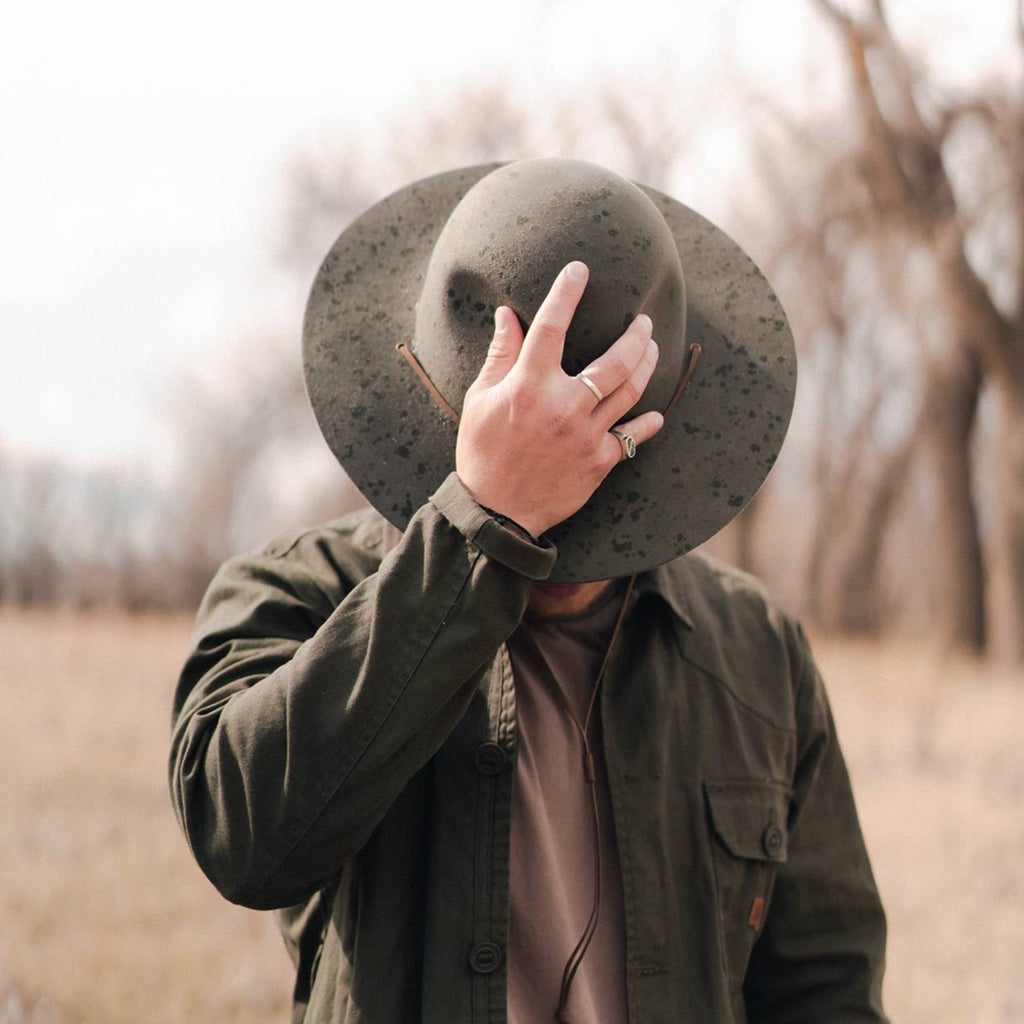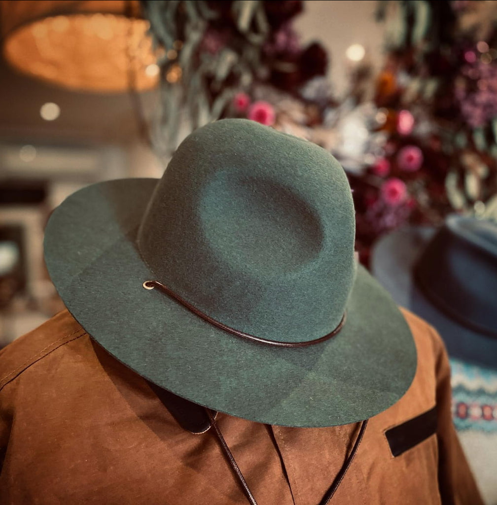 A wide brim outdoor hat with a rounded crown. Featuring an adjustable lanyard to keep it secured on and off your head.