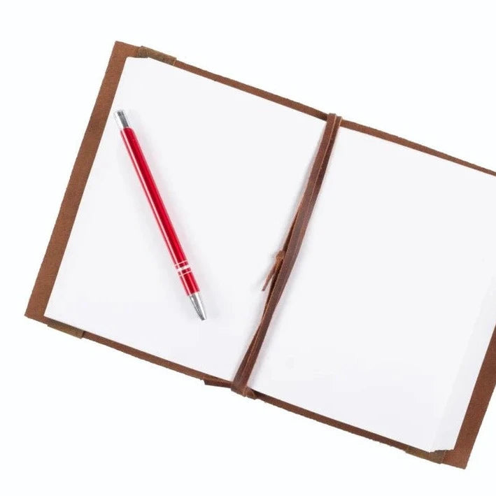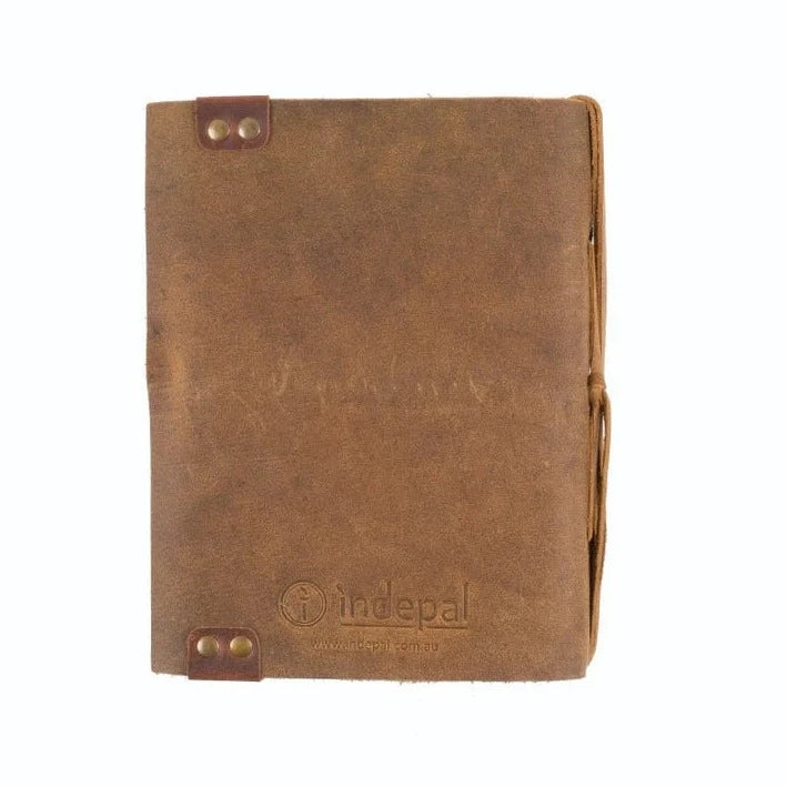 This rustic soft leather journal has a stylish stud effect on the front and back covers. Available in brown and tan colours and the perfect size for portability, make this journal your new best friend. Filled with recycled cotton pages, which are easily replaceable once full, this little journal will inspire you to put pen to paper.