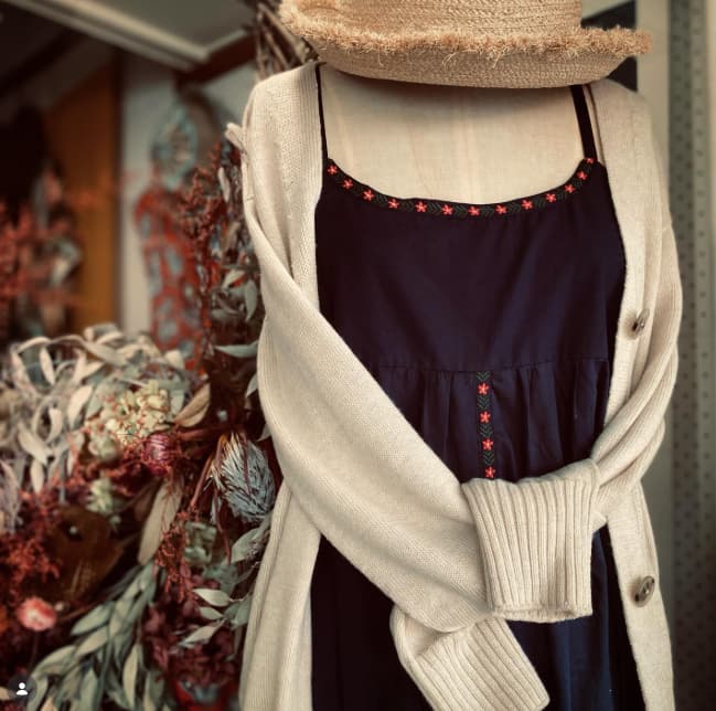 A perfectly simple slip in a lightweight elegant Charcoal with embellishments of detailed embroidery through the front, along the hem and front neckline. Adjustable straps. No pockets.